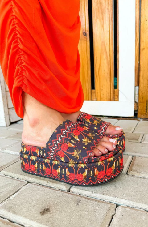 Obs: As sandálias estampadas sofrem alterações por conta dos cortes do tecido.